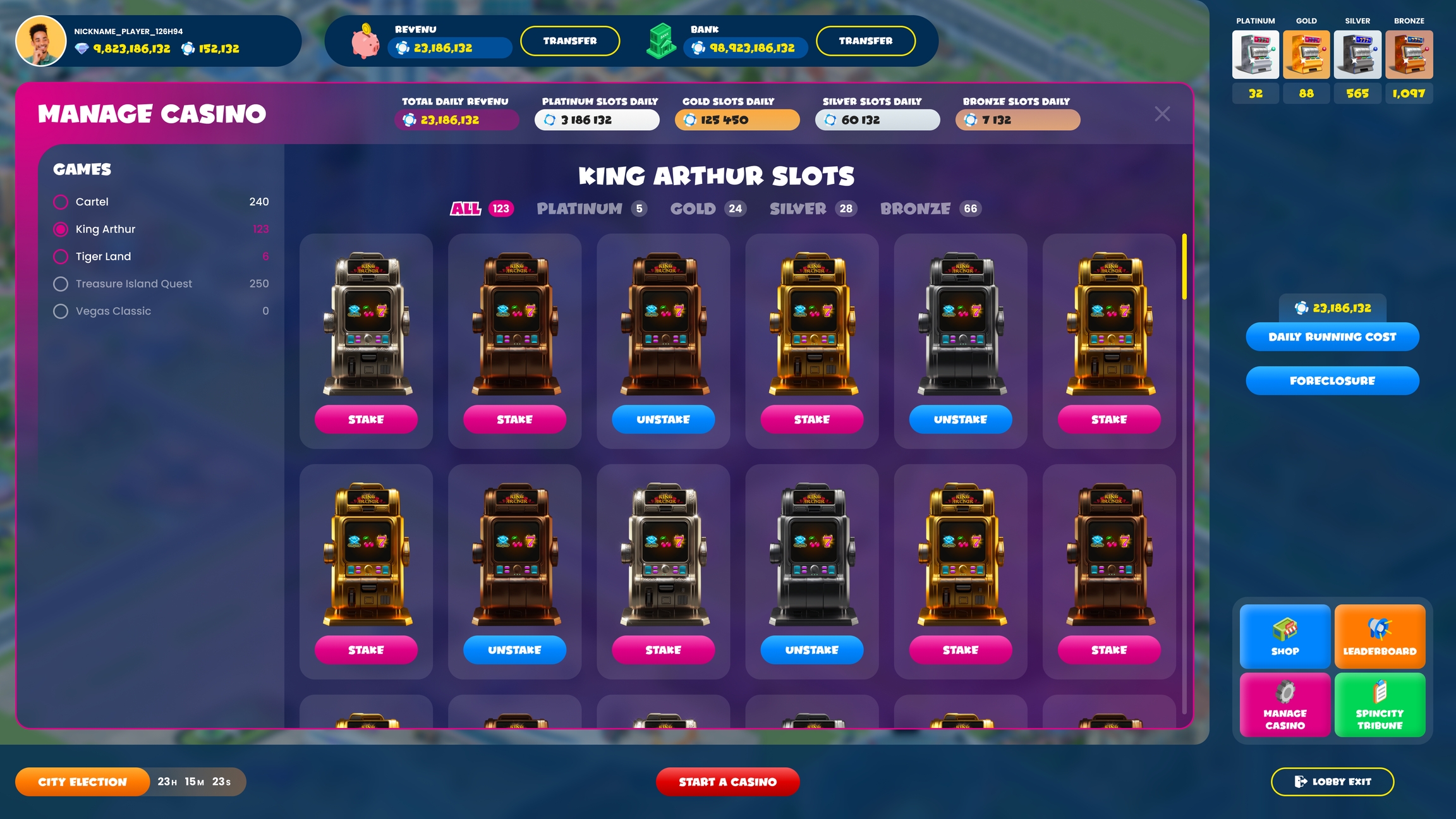 SpinCity Tycoon 호텔에서 슬롯 NFT를 스테이킹하여 매일 $SPINFUN을 채굴하세요.